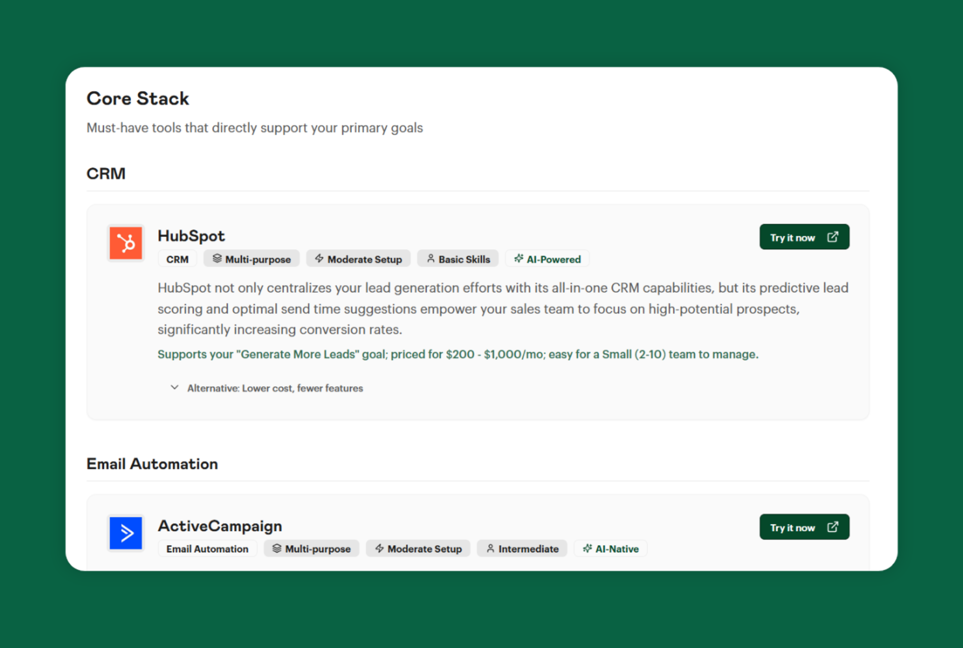 Get a personalized marketing stack with clear reasoning